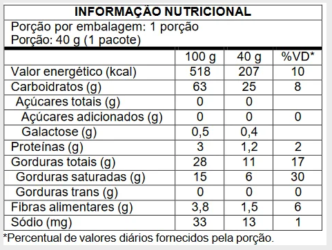 - PODE CONTER: AMENDOIM, AMÊNDOA, CASTANHA-DE-CAJU, CASTANHA-DO-BRASIL, MACADÂMIAS, NOZES, PECÃS E SOJA.