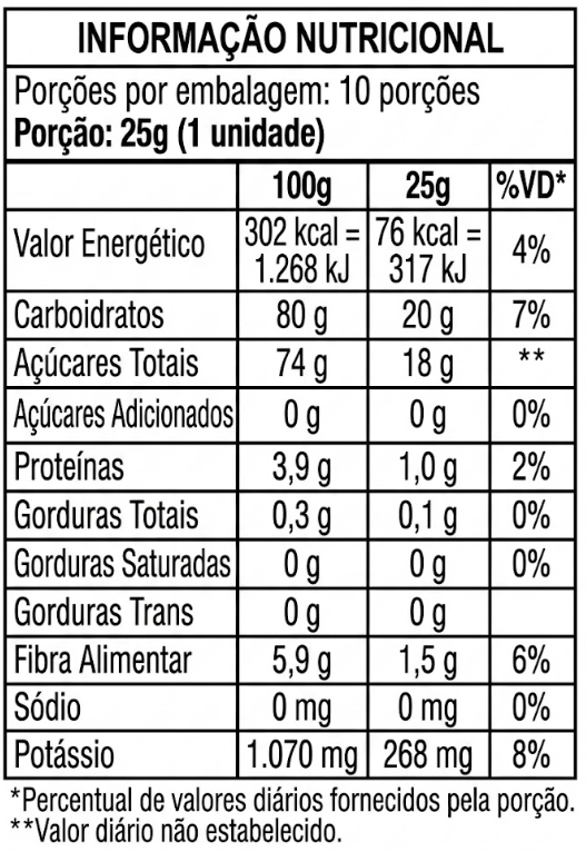 - 📦 Praticidade Diária: Embalagem de 250g contendo 10 unidades de 25g, facilitando o controle da porção e o transporte.