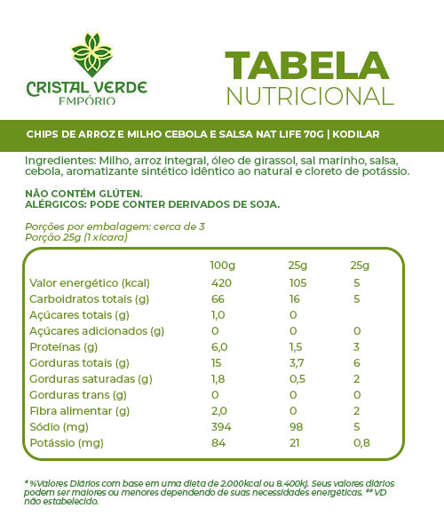 Ao optar pelos Chips de Arroz Integral & Milho da Natural Life, você pode desfrutar de um snack delicioso, crocante e nutritivo, sem se preocupar com ingredientes prejudiciais à sua saúde. É uma maneira prática e saborosa de satisfazer seu desejo por petiscos, garantindo uma opção segura e livre de glúten.