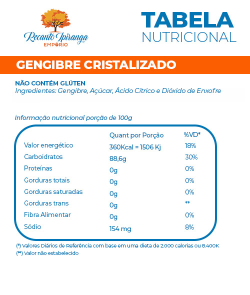O Gengibre Cristalizado é o equilíbrio perfeito entre sabor e saúde. Produzido a partir do gengibre fresco, ele passa por um processo artesanal de imersão em calda de açúcar e secagem, resultando em pedaços cristalinos com sabor picante, levemente adocicado e aquele aroma irresistível do gengibre.