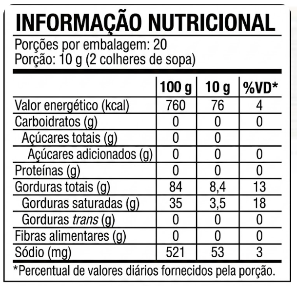 - ⚡ Energia Saudável: Uma excelente fonte de lipídios de qualidade para o seu dia a dia.