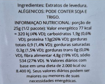 Levedura inativa Saccharomyces cerevisiae obtida da fermentação da glicose da cana-de-açúcar ou do melaço da beterraba.