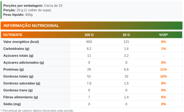 Rica em proteínas e gorduras boas, essa pasta de amendoim natural é ideal para o pré e pós-treino, dietas de emagrecimento, estratégias low carb ou para quem deseja uma alimentação mais equilibrada. Além disso, é vegana, sem glúten e sem lactose, sendo segura para celíacos, intolerantes e pessoas com APLV.