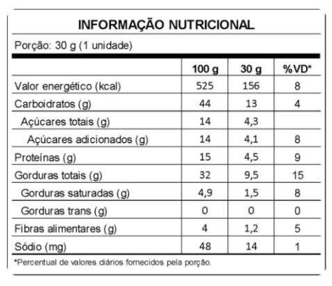 - CONTÉM: AMENDOIM, CASTANHA-DO-PARÁ E CASTANHA-DE-CAJU.