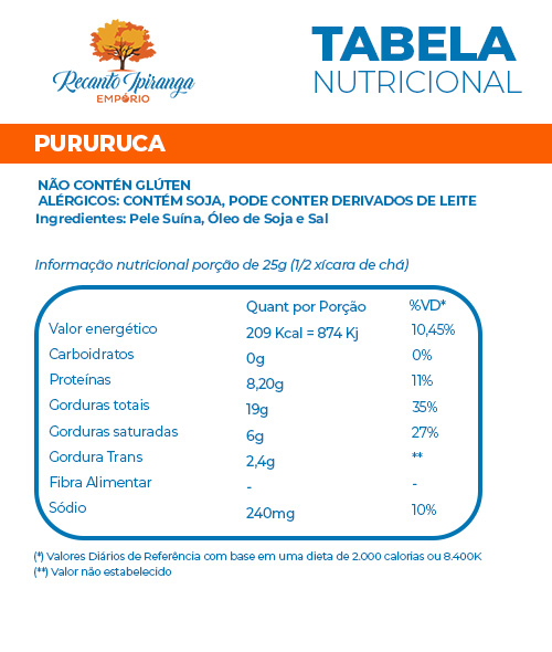 Ideal para acompanhar feijoadas, pratos típicos, farofas ou até mesmo como petisco, a pururuca é uma opção para quem deseja um snack salgado e tradicional, com aquele gostinho caseiro.