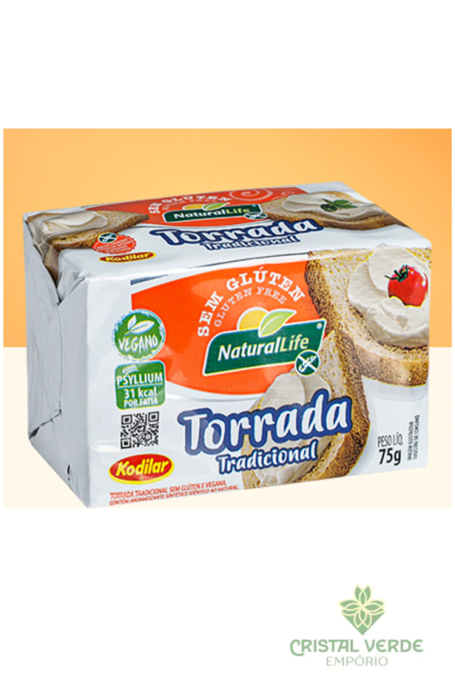 A torrada clássica é feita sem glúten e é vegana, não contendo leite nem ovos. É preparada utilizando semente de linhaça e psyllium, ambos ricos em fibras.